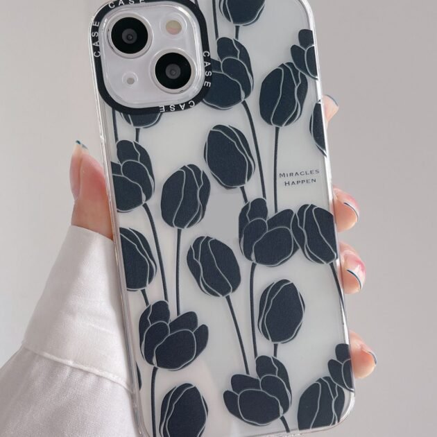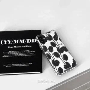 🖤 كوفير آيفون بتصميم زهور أسود وأبيض